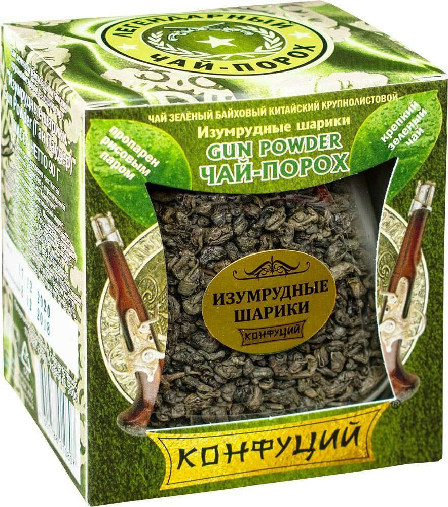 Конфуций Чай листовойзеленый Изумрудные шарики Gun Powder,75 г