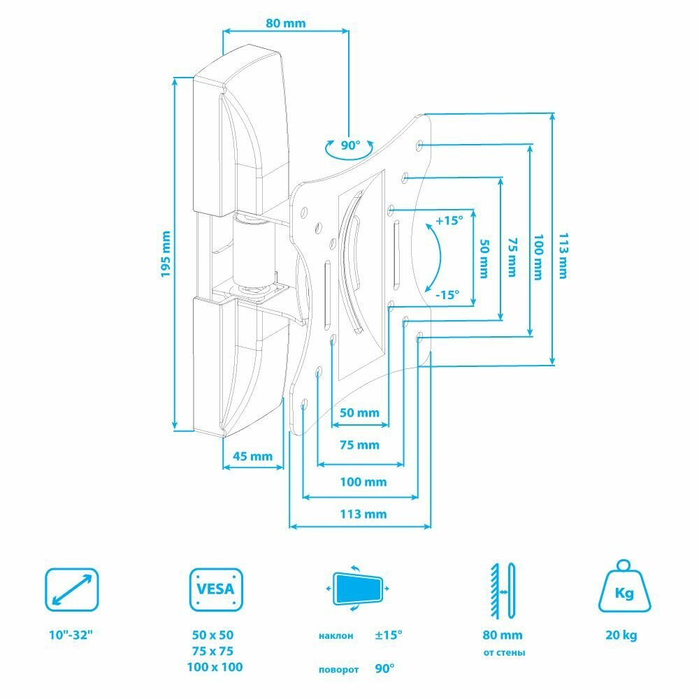 | Плюсы: | Подходит и на 32 дюймовую диагональ, но при условии, что vesa не больше, чем 100 х 100 |