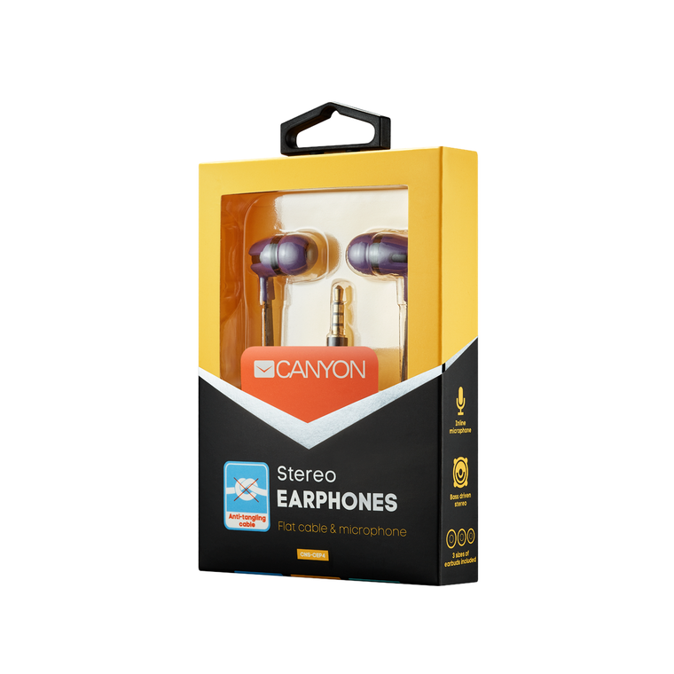 Гарнитура проводная CANYON SEP-4 вставные, 32 Ом, 100дБ, кабель 1.2м, Фиолетовый (CNS-CEP4P)