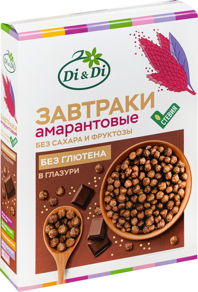 Купить Готовый завтрак амарантовый DI&DI с темным шоколадом, со стевией, 250г