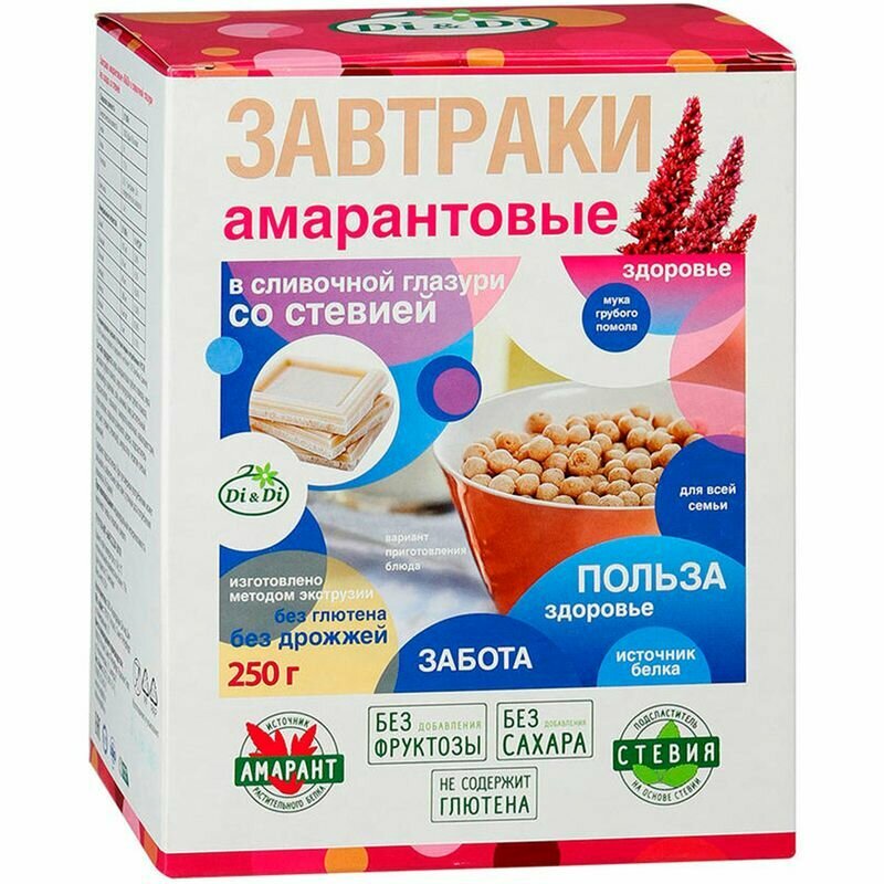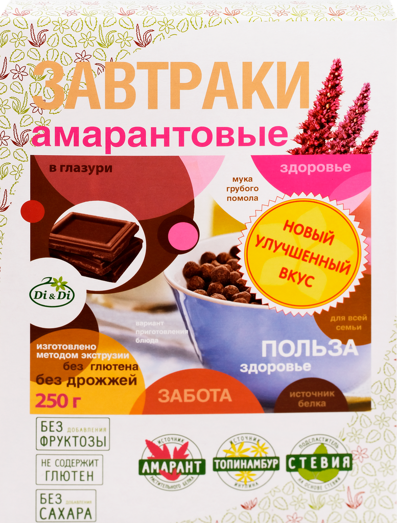 Готовый завтрак амарантовый DI&DI с темным шоколадом, со стевией, 250г интересное: