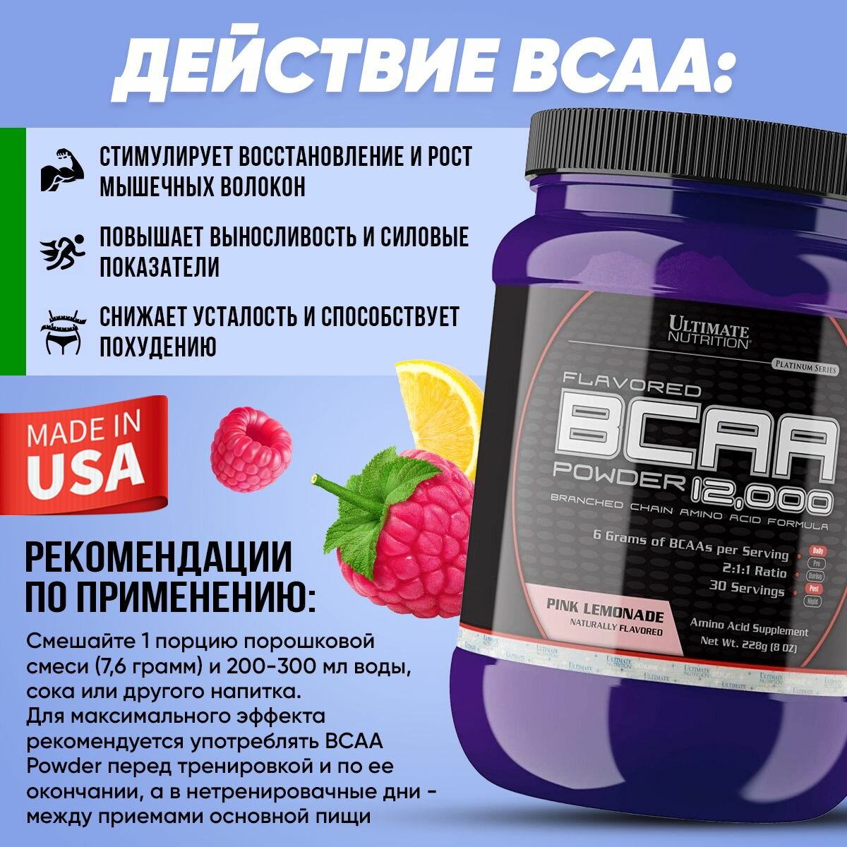 Ниже Вы можете прочитать отзывы на BCAA Ultimate Nutrition BCAA Powder 12000, розовый лимонад, 228 гр., ознакомится с подробными характеристиками, посмотреть интересные обзоры и фотографии на BCAA Ultimate Nutrition BCAA Powder 12000, розовый лимонад, 228 гр..