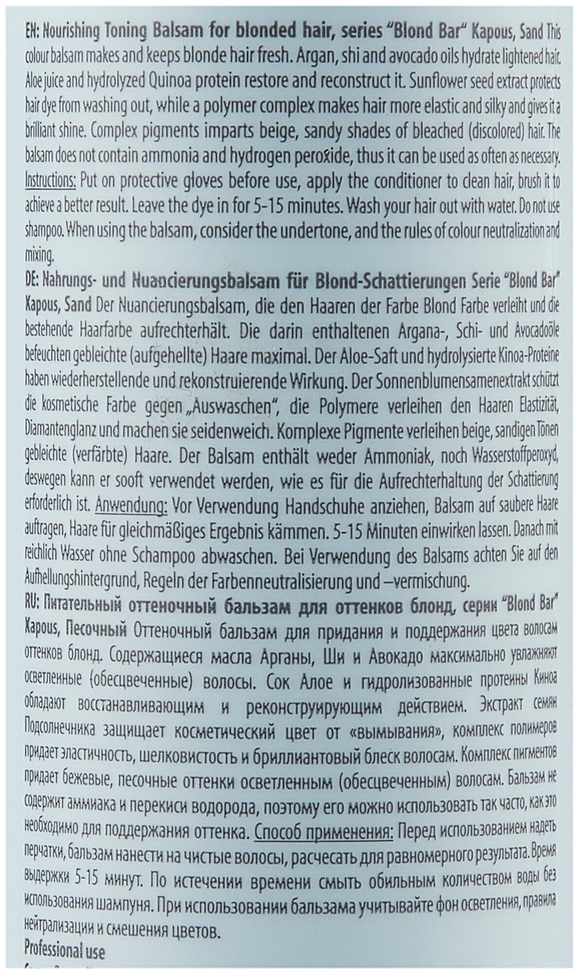 KAPOUS Бальзам оттеночный питательный Blond bar платиновый 200мл