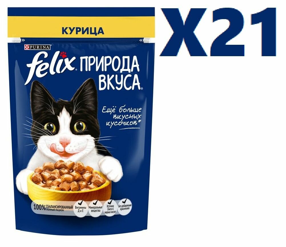 Влажный корм Паучи Пурина Феликс Природа вкуса для взрослых кошек с курицей (цена за упаковку) 75г х 26шт