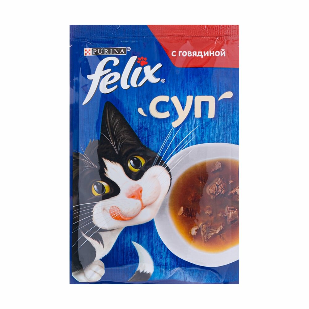 Купить Корм влажный Felix Суп с говядиной для взрослых кошек, 48г
