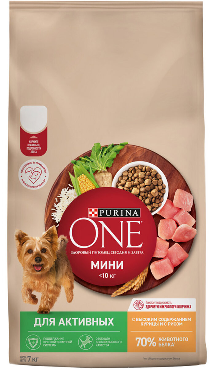 Купить PURINA ONE мини 7 кг сухой корм для взрослых собак мелких пород, с высоким содержанием курицы и с рисом