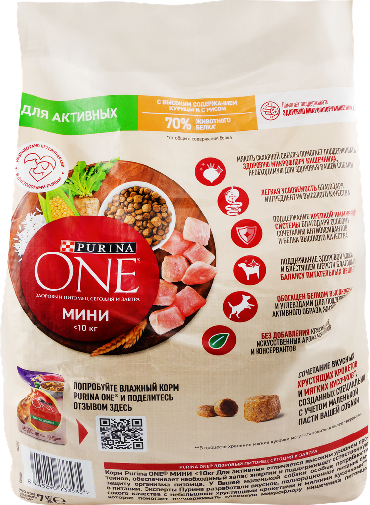PURINA ONE мини активная для активных взрослых собак маленьких пород с курицей и рисом (1,5 + 1,5 кг)