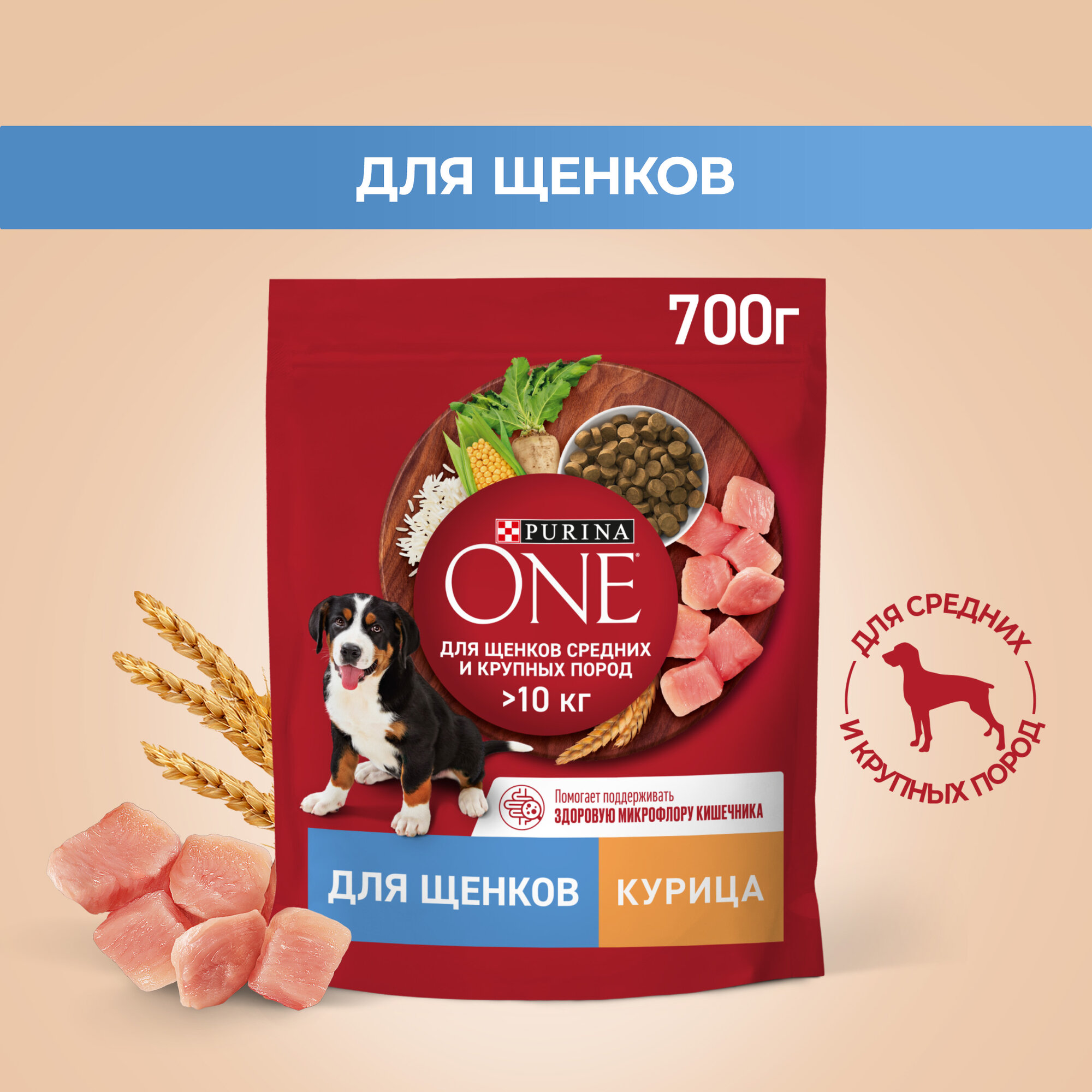 Сухой корм Purina ONE для щенков средних и крупных пород, с высоким содержанием курицы и с рисом, 700 г