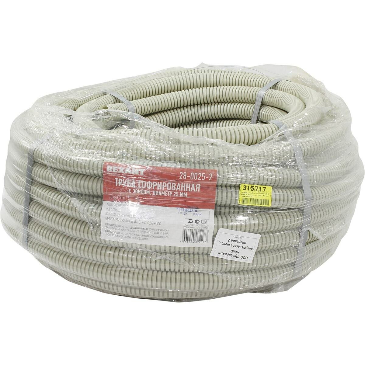Купить Труба гофрированная REXANT ПВХ, D25, с зондом (50 м)
