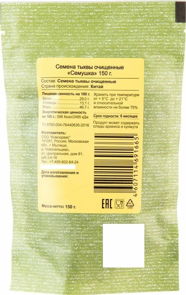 Семена тыквы Семушка очищенные 150 г интересное: