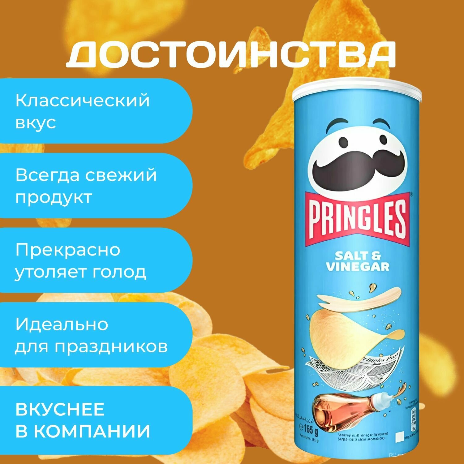 Картофельные чипсы Pringles "Соль и уксус" 165 гр. 1 шт. Принглс