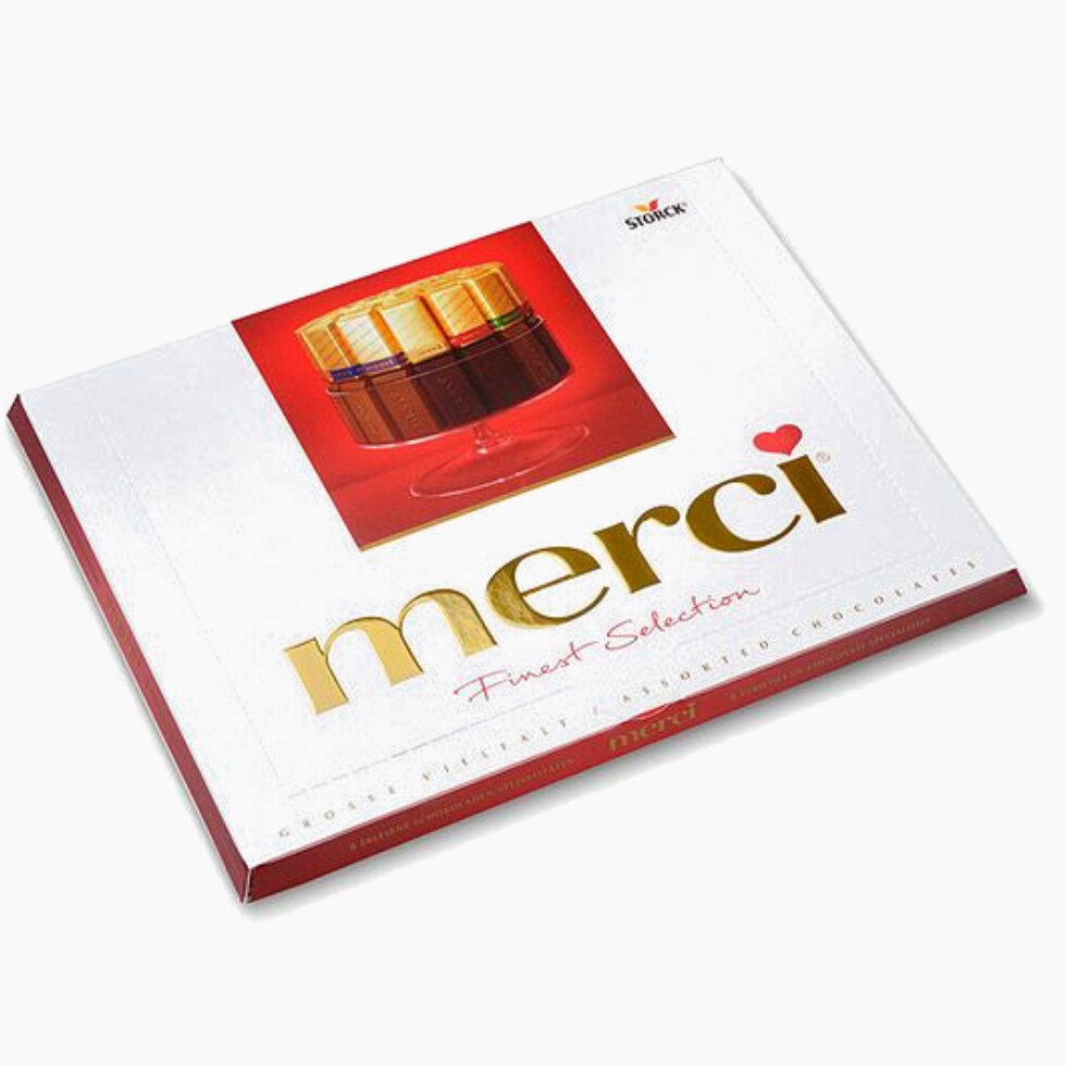Merci, конфеты шоколадные в коробке, подарочный набор, ассорти, произведено в Германии, 250г
