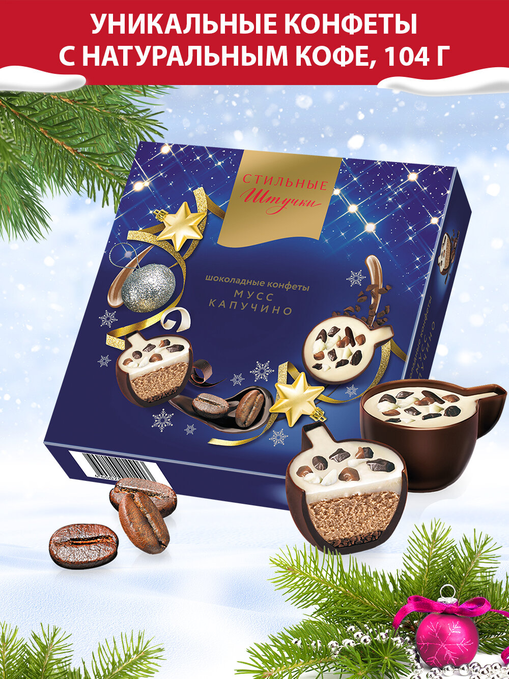 Купить Конфеты шоколадные Стильные штучки Мусс капучино подарочные в новогодней коробке, 104 г