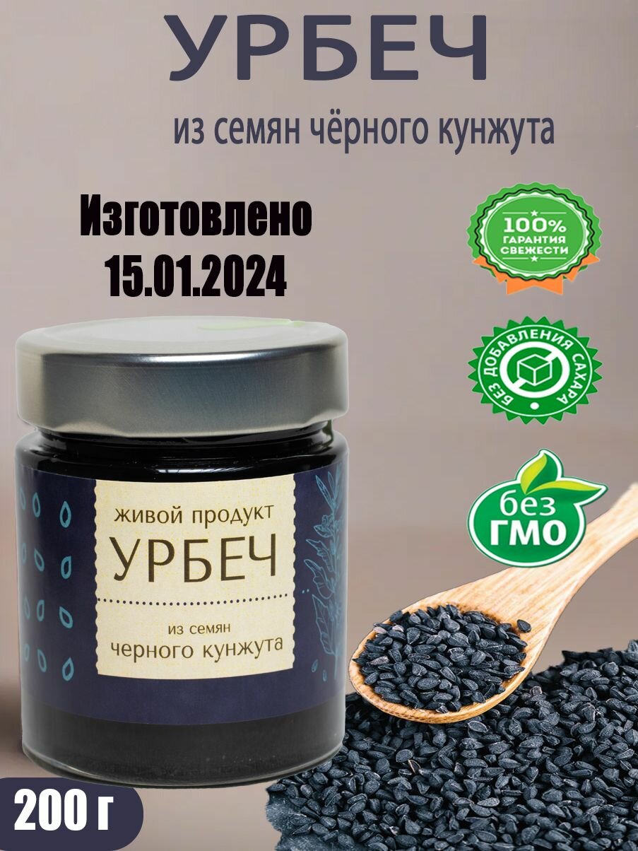 Урбеч Живой продукт из семян черного кунжута, 200 г, натуральная паста без сахара