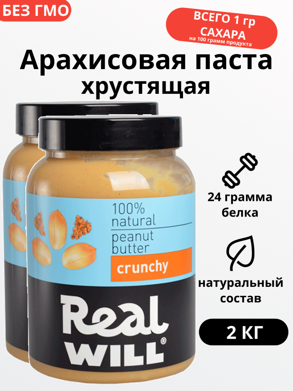 Купить Арахисовая паста Real Will хрустящая, 2 кг