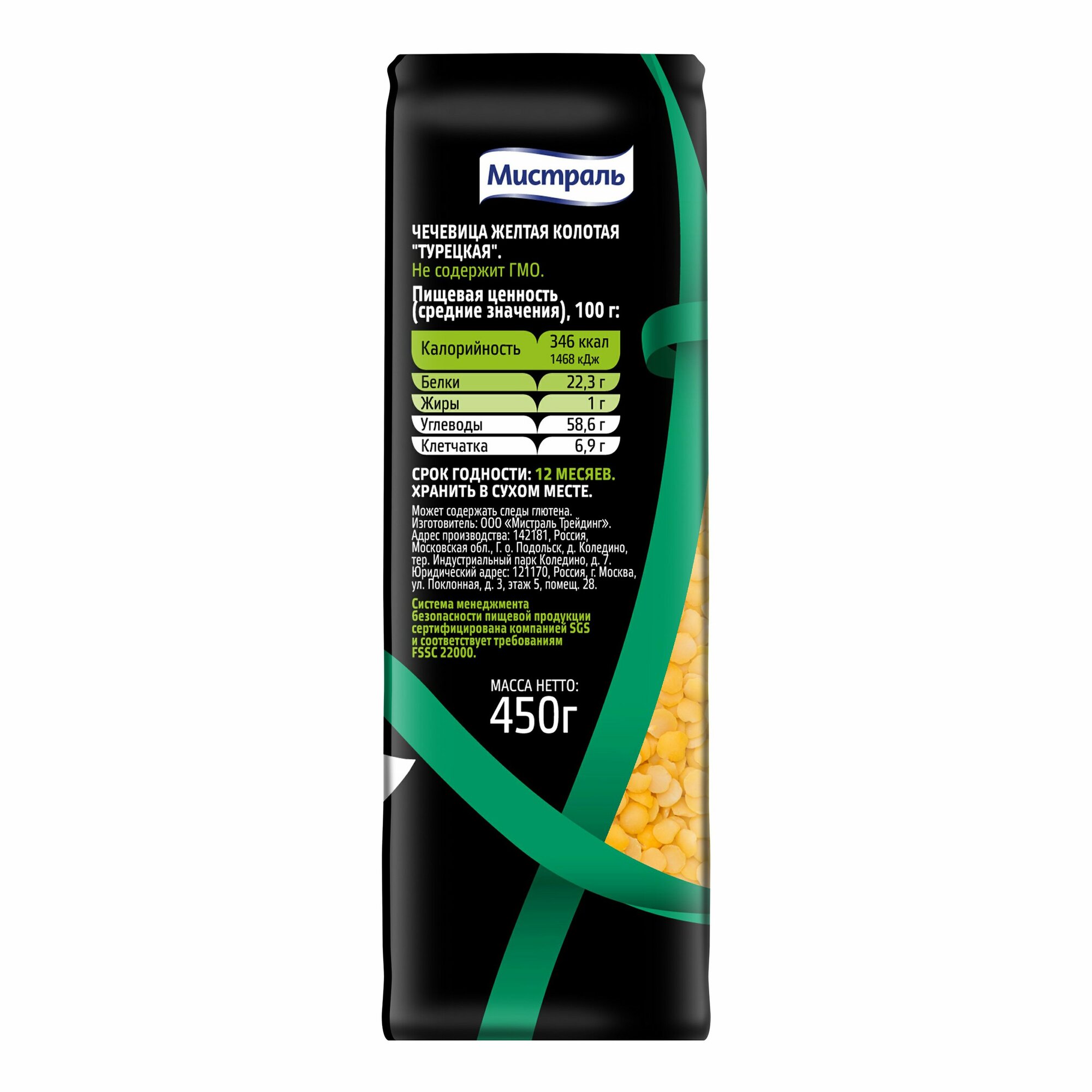 450Г чечевица желтая мистраль