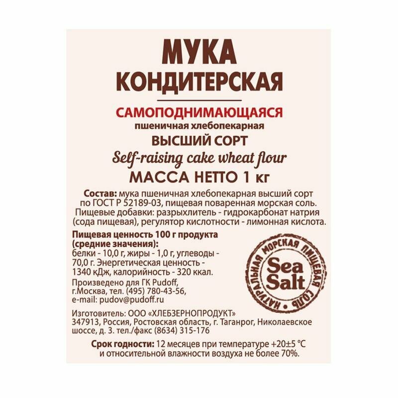 СохранитьМука кондитерская самоподнимающаяся пшеничная хлебопекарная высший сорт С.Пудовъ, 1 кг интересное: