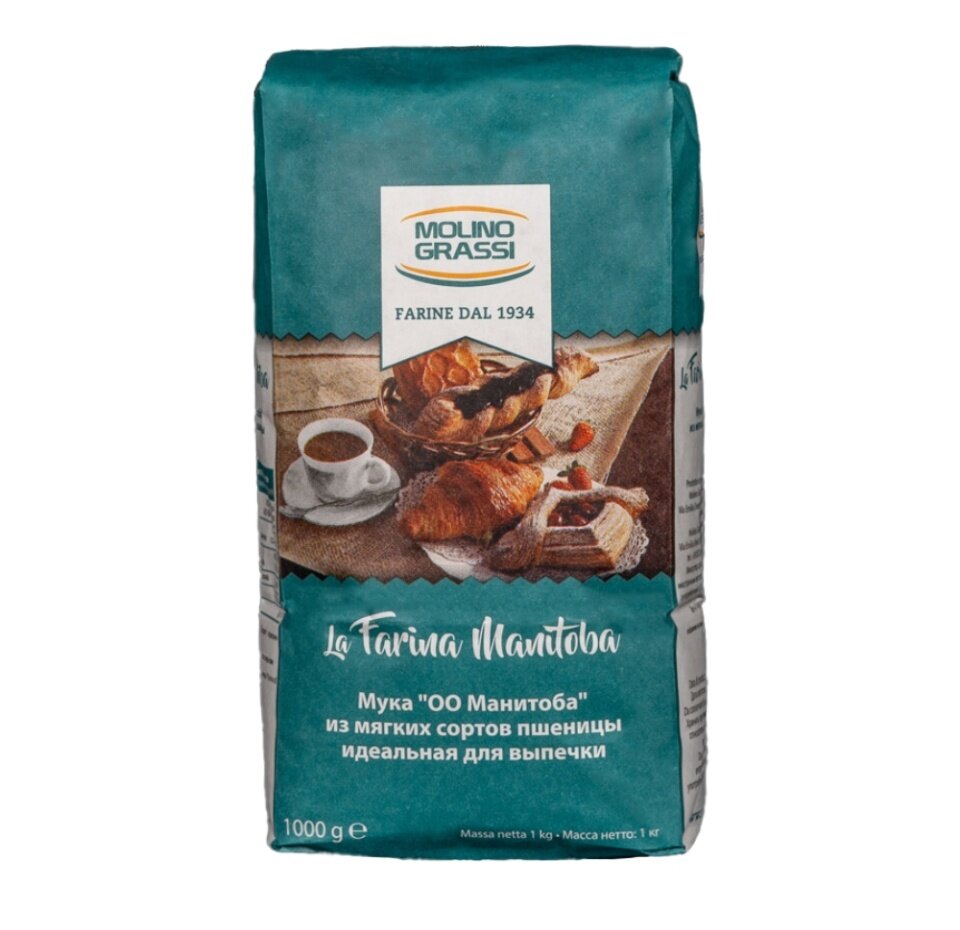 Мука 00 Манитоба, из мягких сортов пшеницы, Molino Grassi, Италия, 1 кг х 1шт