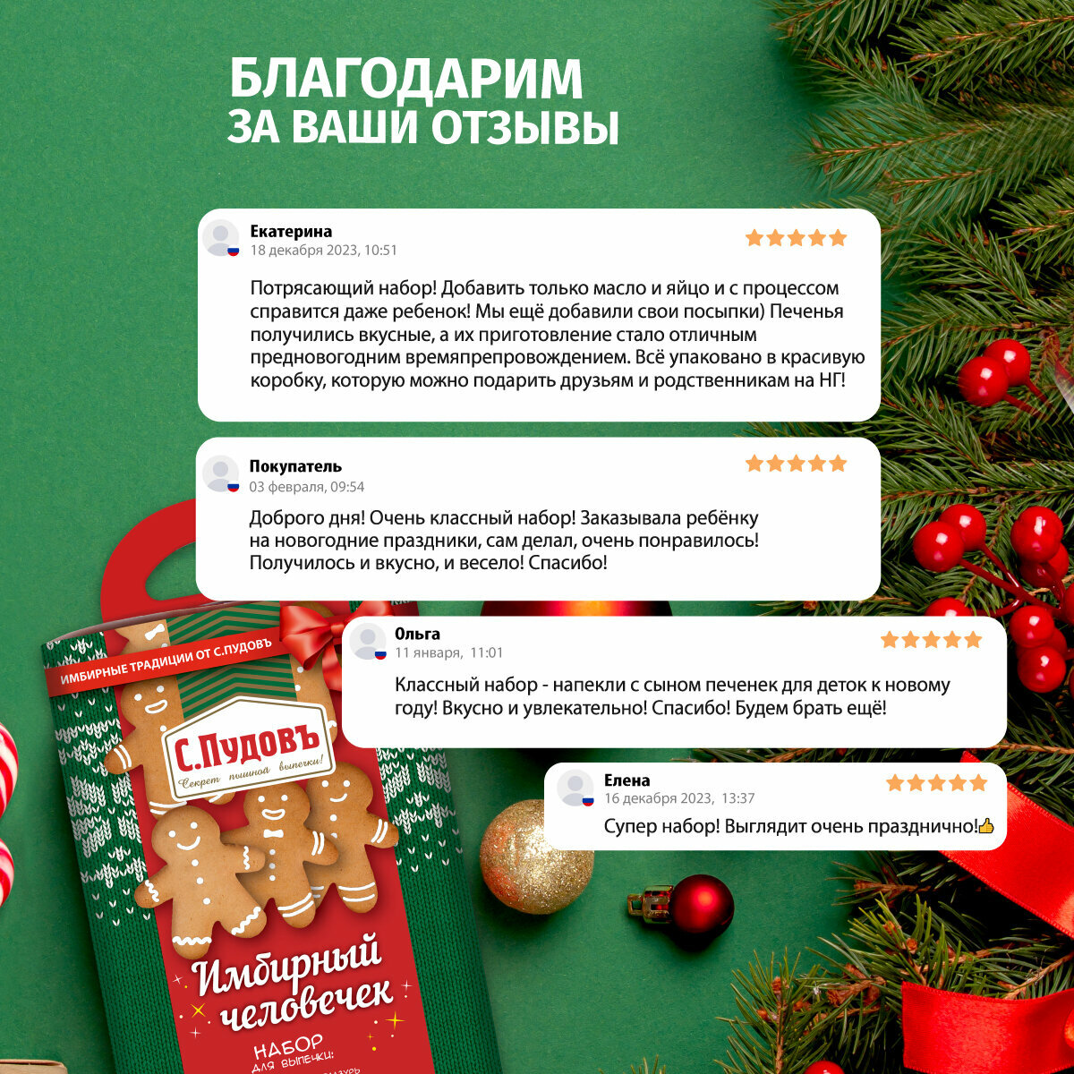 Ниже Вы можете прочитать отзывы на Новогодний подарочный набор для выпечки печенья "Имбирный человечек", сладкий подарок для детей ( мучная смесь для выпечки, глазурь, формочка), С.Пудовъ, ознакомится с подробными характеристиками, посмотреть интересные обзоры и фотографии на Новогодний подарочный набор для выпечки печенья "Имбирный человечек", сладкий подарок для детей ( мучная смесь для выпечки, глазурь, формочка), С.Пудовъ.