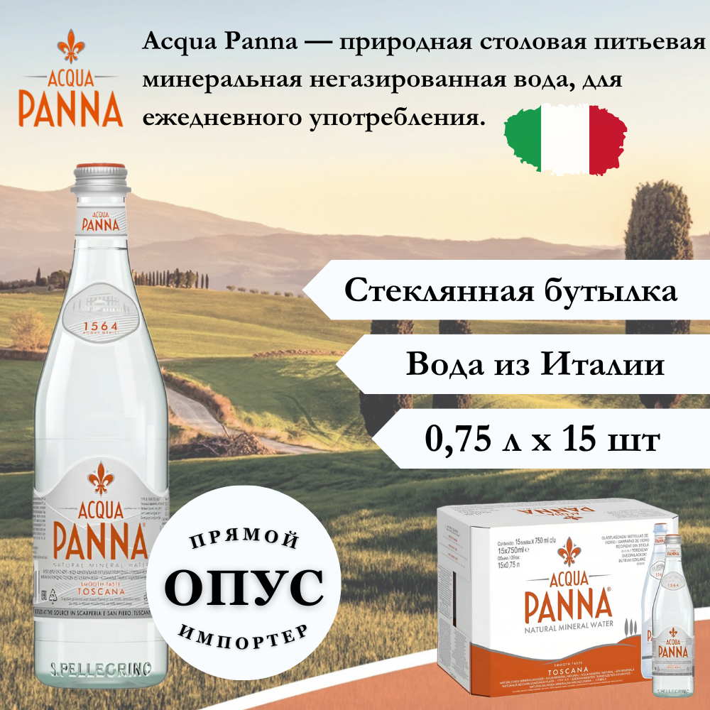 Минеральная вода Acqua Panna / Аква Панна негазированная стекло 0.75 л (15 штук)