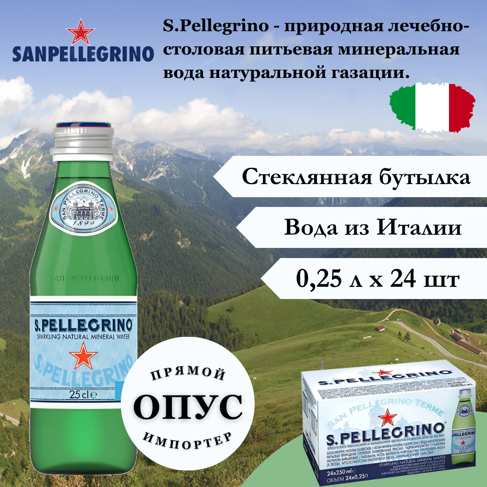 Минеральная вода S.Pellegrino / Сан Пеллегрино газированная стекло (0,25л*24шт)