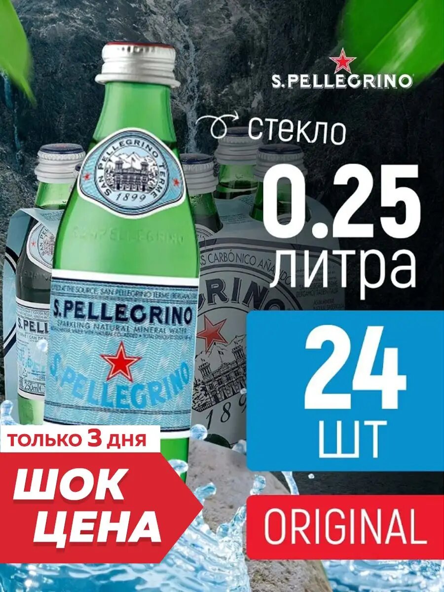 Минеральная вода S. Pellegrino газированная, стекло, 24 шт. по 0.25 л