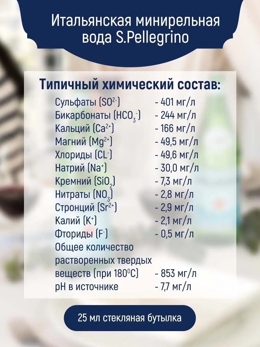 СохранитьВода минеральная San Pellegrino (Сан Пеллегрино) 0,25 л х 24 бутылки, газированная, стекло интересное: