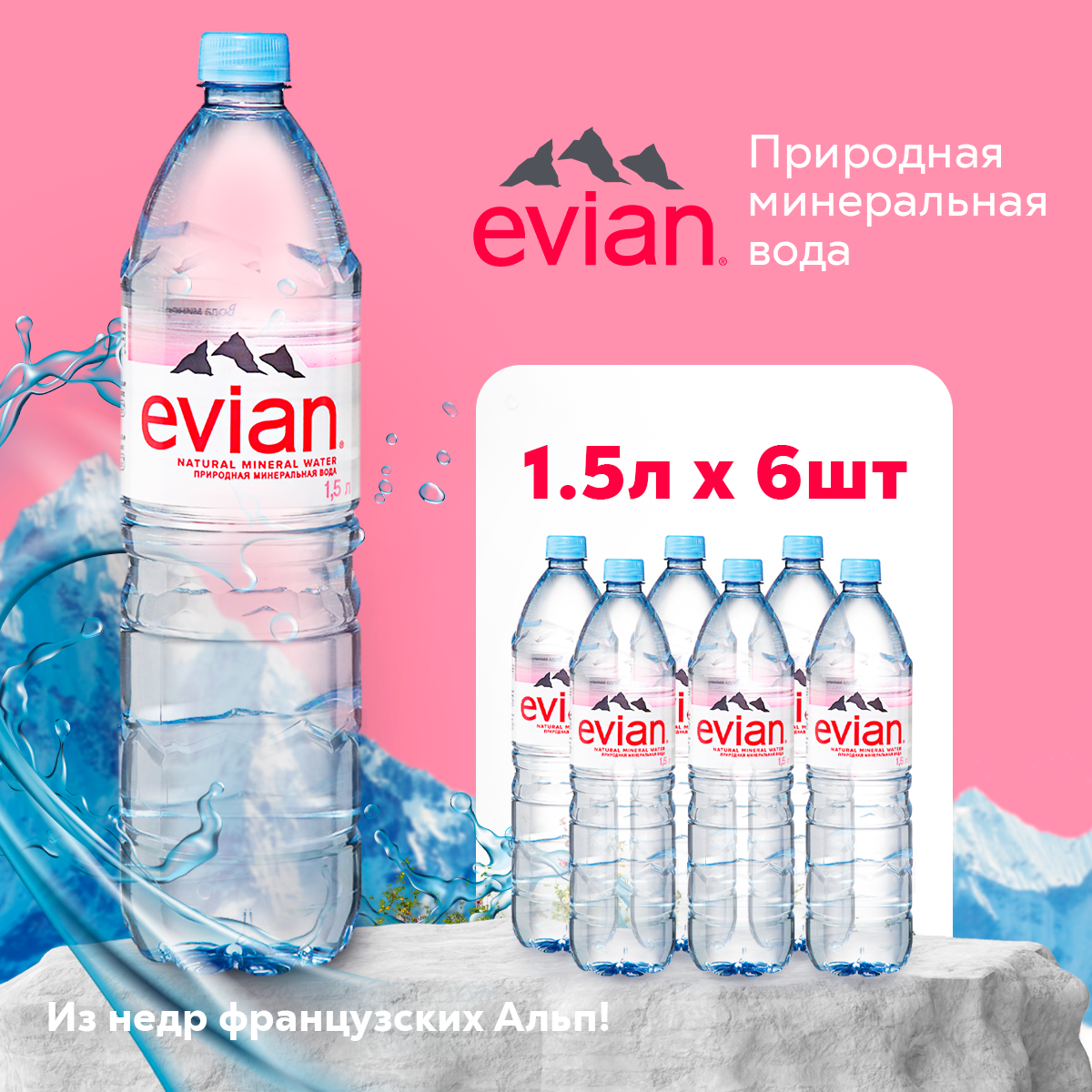 Вода минеральная Evian / Эвиан негазированная ПЭТ 1.5 л (6 штук)