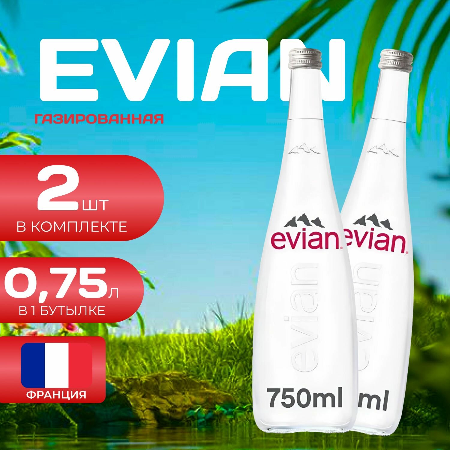 Купить Evian Вода Газированная Стекло 0.75л. (2 шт.) Эвиан