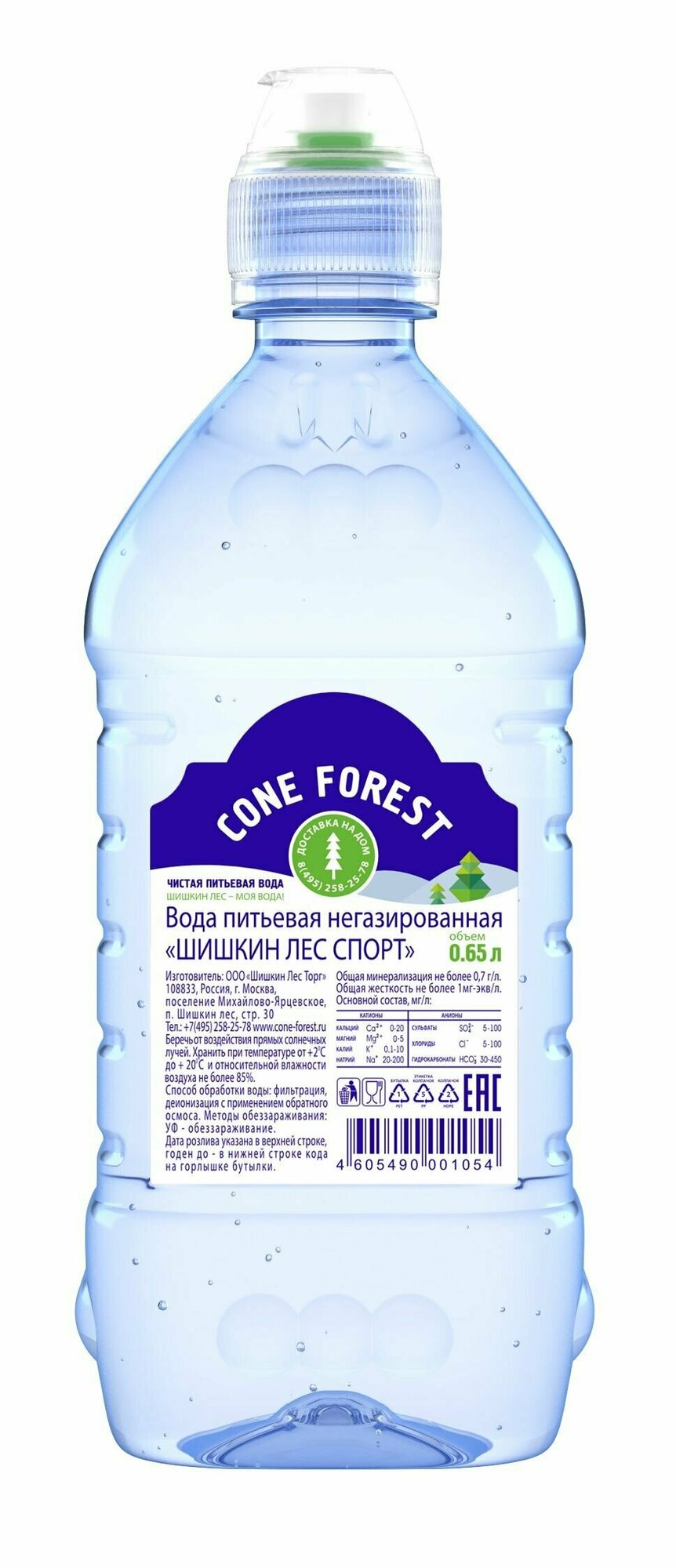 Вода питьевая шишкин ЛЕС Спорт негазированная, 0.65л