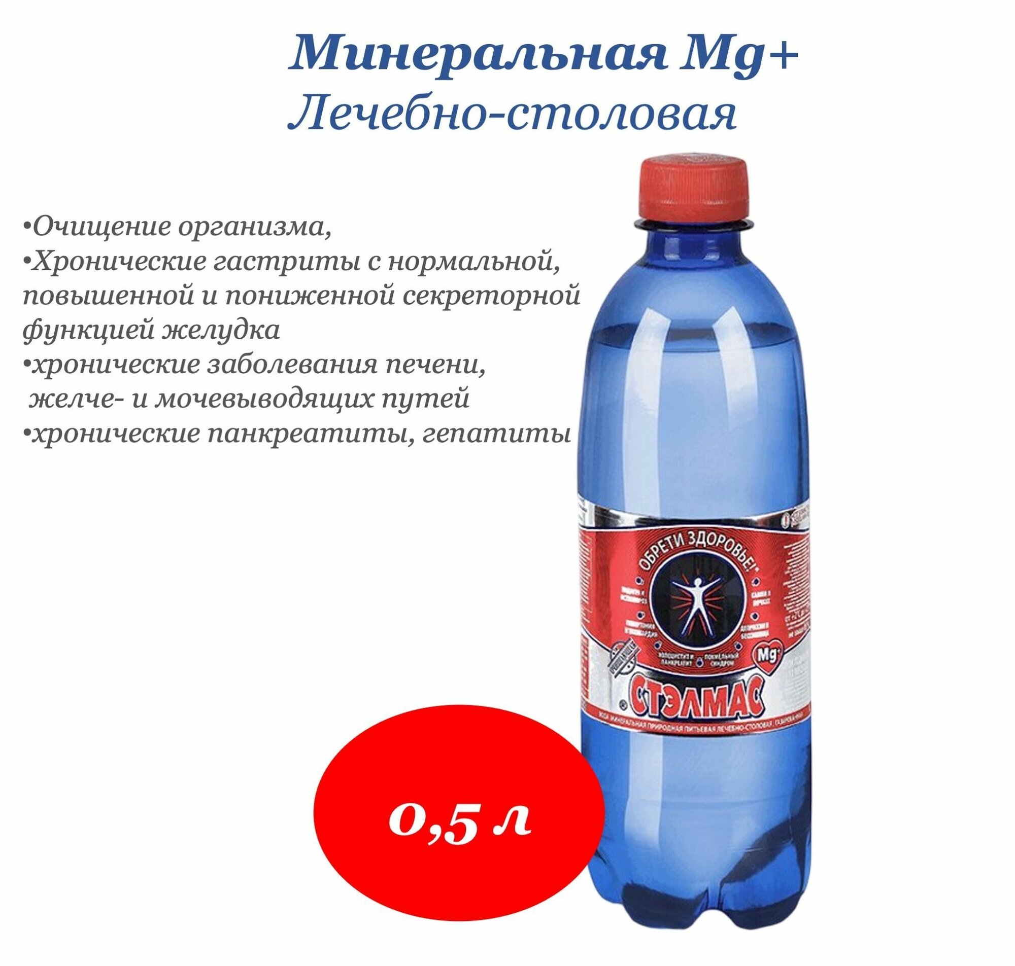 Вода минеральная лечебная Стэлмас Mg+ газ ПЭТ 0,5л 12 шт/уп