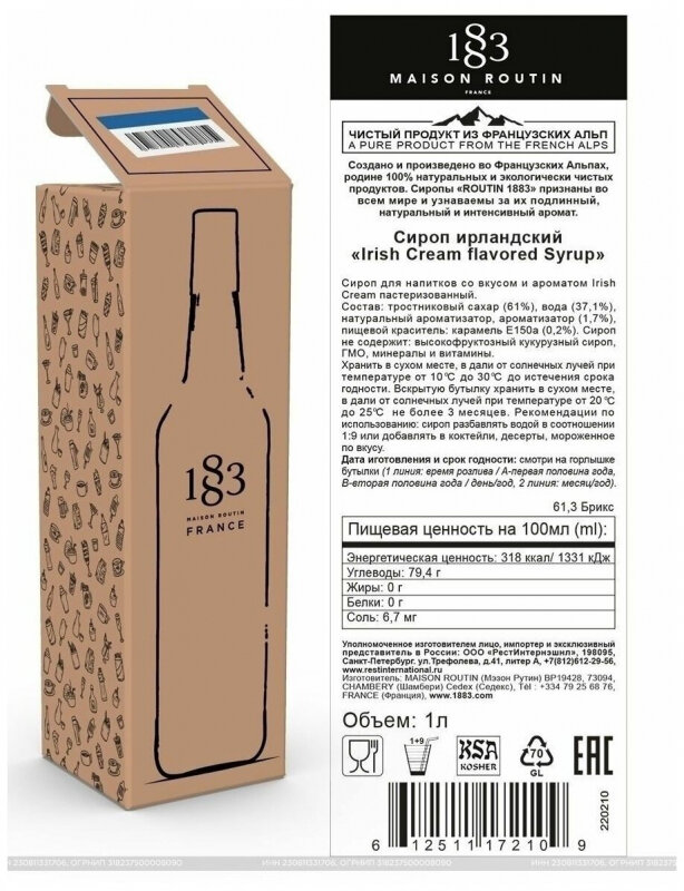 Сироп 1883 Maison Routin Irish Cream (Ирландский), 1л