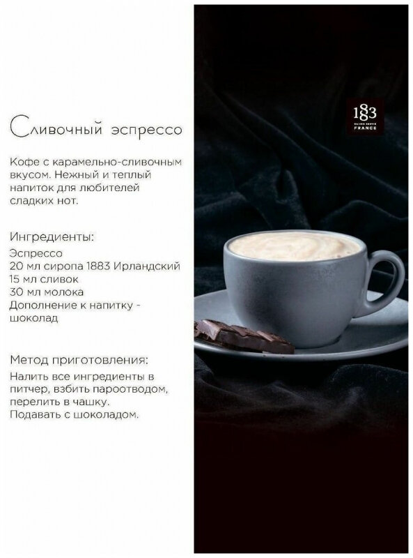 Сироп для кофе и коктейлей Ирландский крем в фирменной индивидуальной упаковке