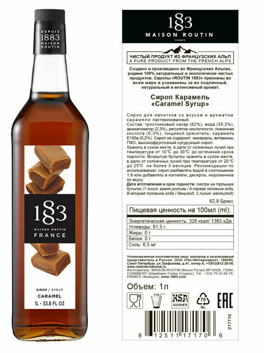 Сироп 1883 Maison Routin "Карамель", для кофейных напитков, органический, 1л интересное:
