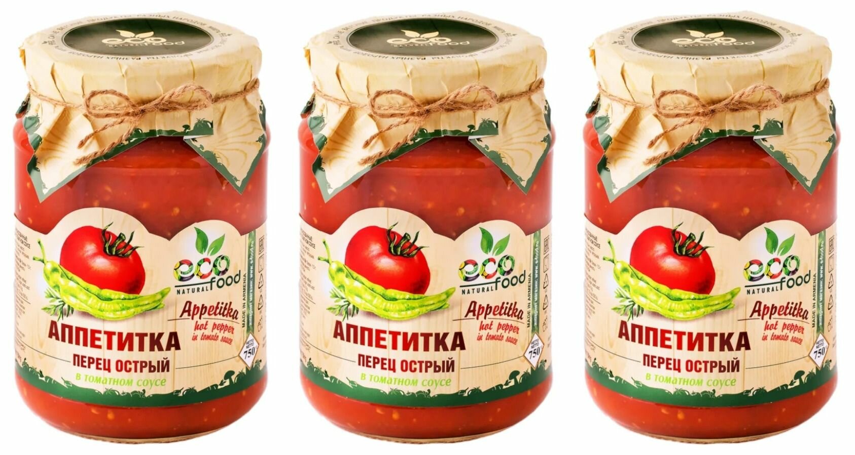 Купить Ecofood Перец острый в томатном соусе "Аппетитка", 750 г, 3 шт