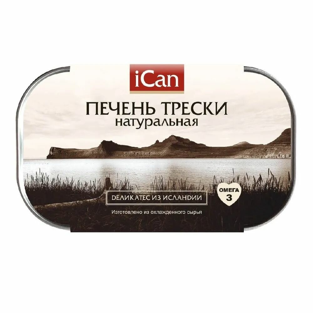 Печень трески iCan натуральная омега-3 ж/б 115 г