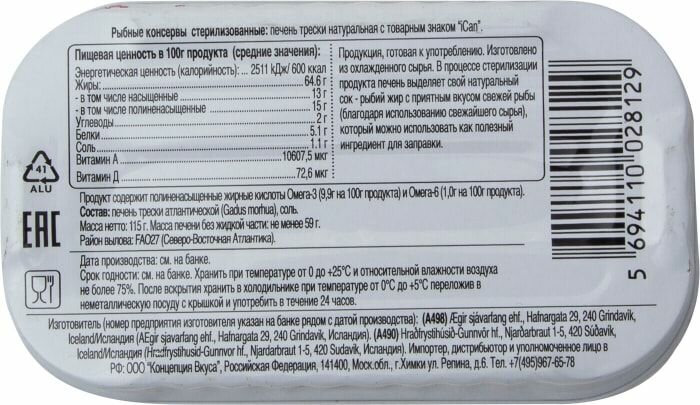 Печень трески натуральная, iCan, 115 г, Исландия интересное: