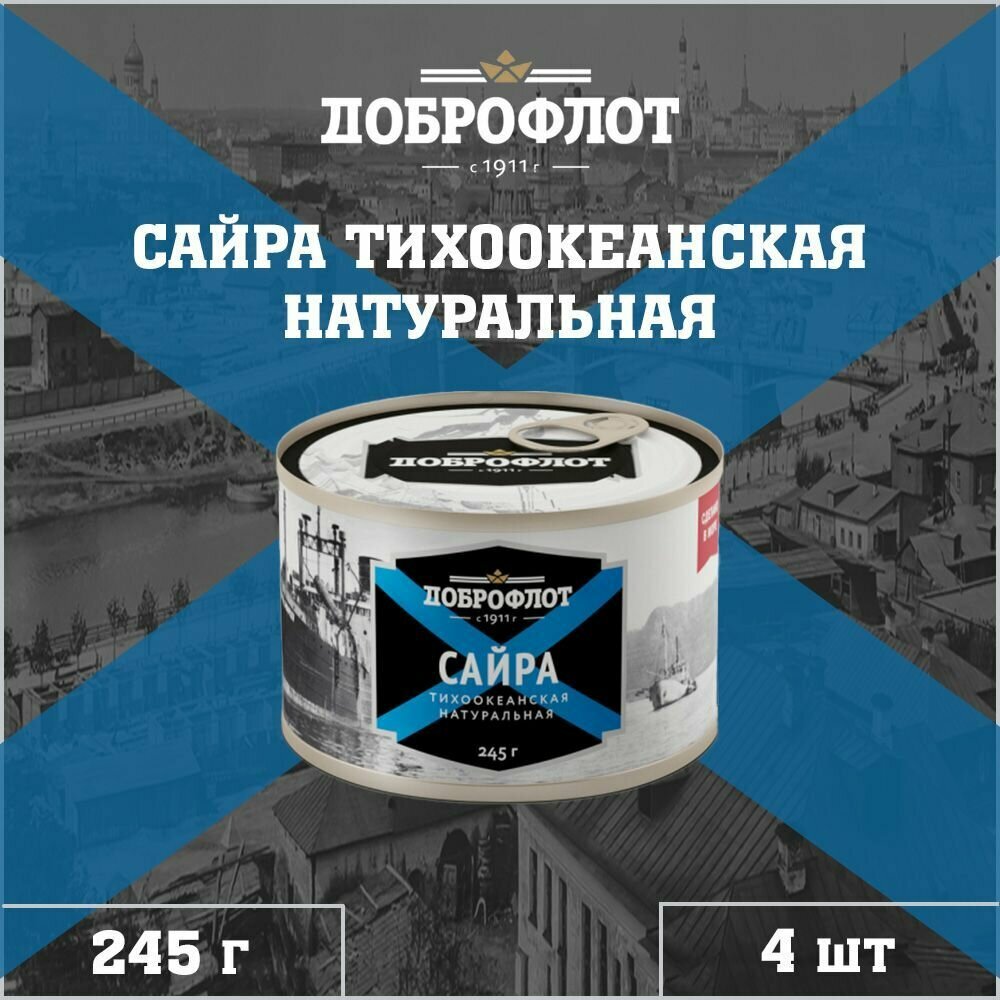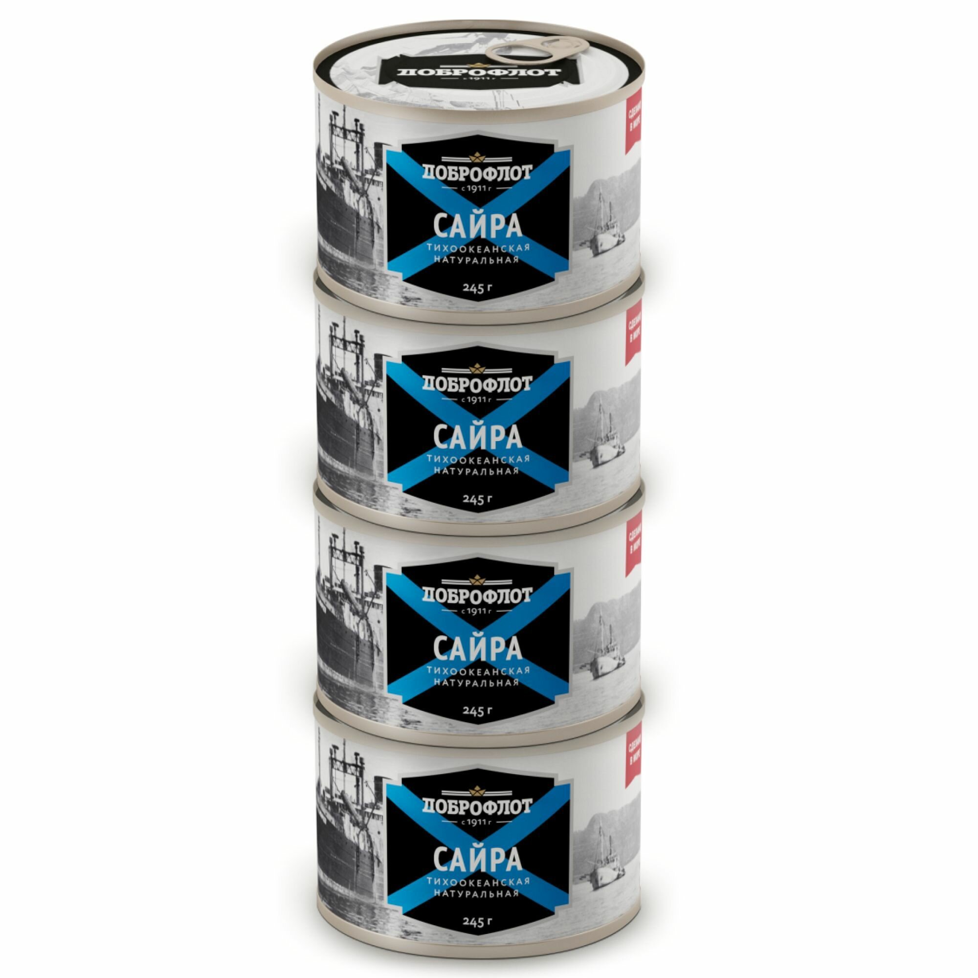 Купить Сайра натуральная, тихоокеанская, ГОСТ, Доброфлот, 4 шт. по 245 г
