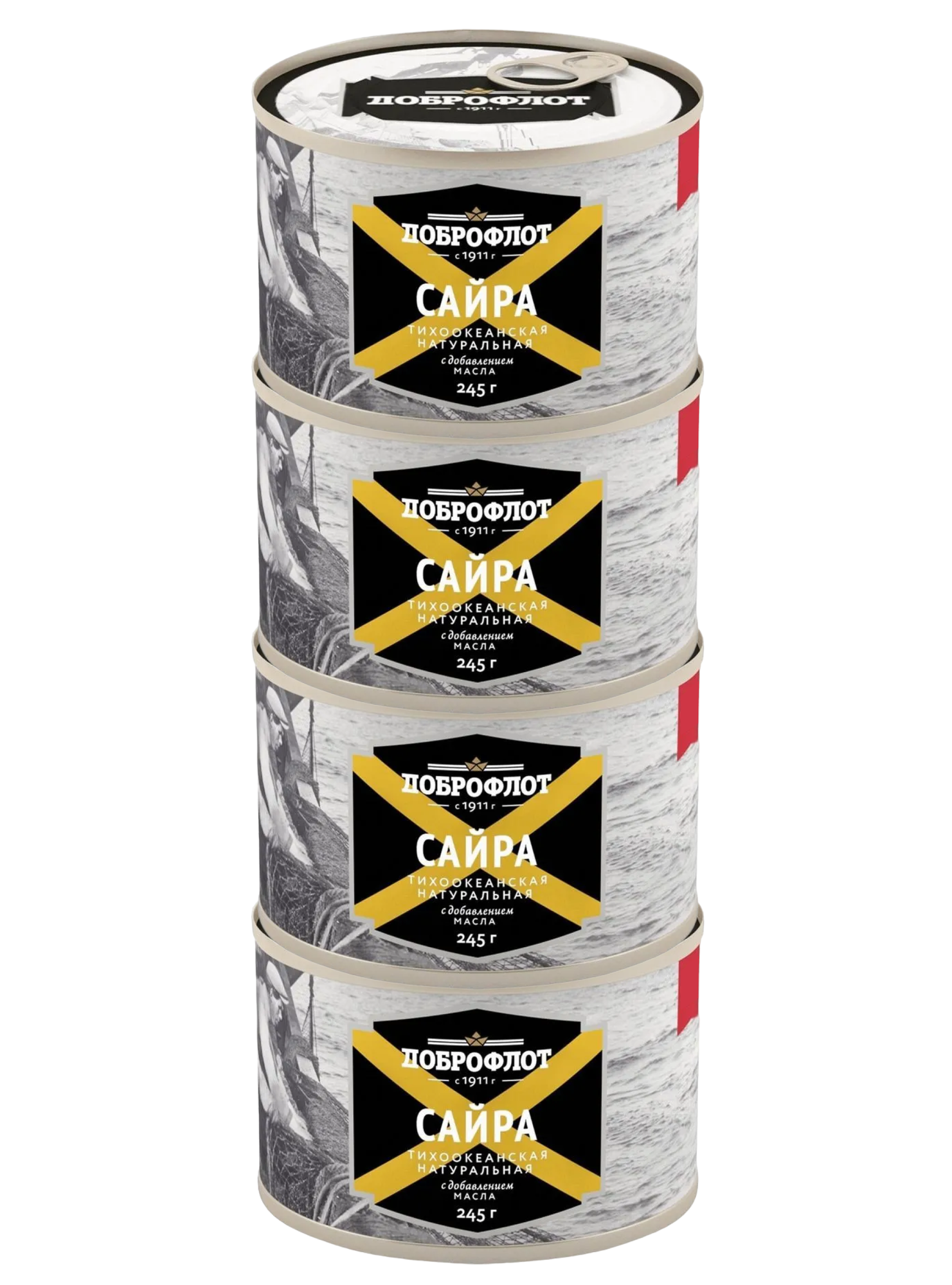Сайра тихоокеанская натуральная с добавлением масла Доброфлот ГОСТ 245 гр - 4 банки