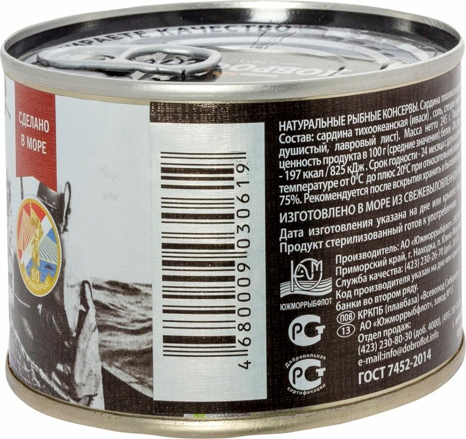 Консервы рыбные "Доброфлот" - Сардина тихоокеанская иваси натуральная, 245 г - 4 шт