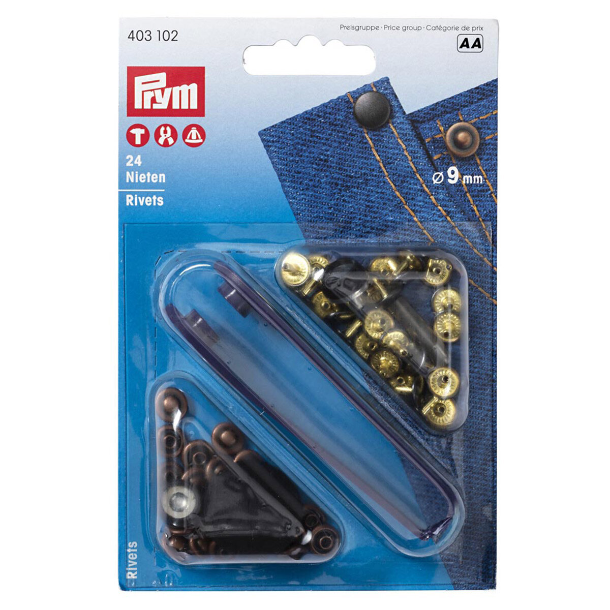 PRYM 403101 Заклепки 9 мм, серебристый, 24 шт.