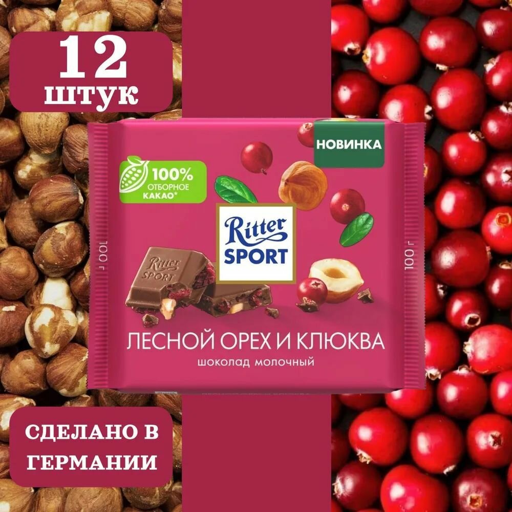 Купить Ritter Sport Риттер шоколад молочный Клюква и Лесной Орех, 12 шт по 100 г
