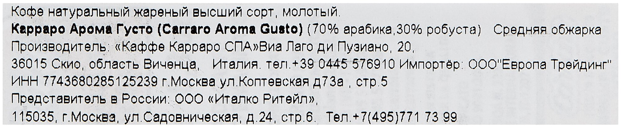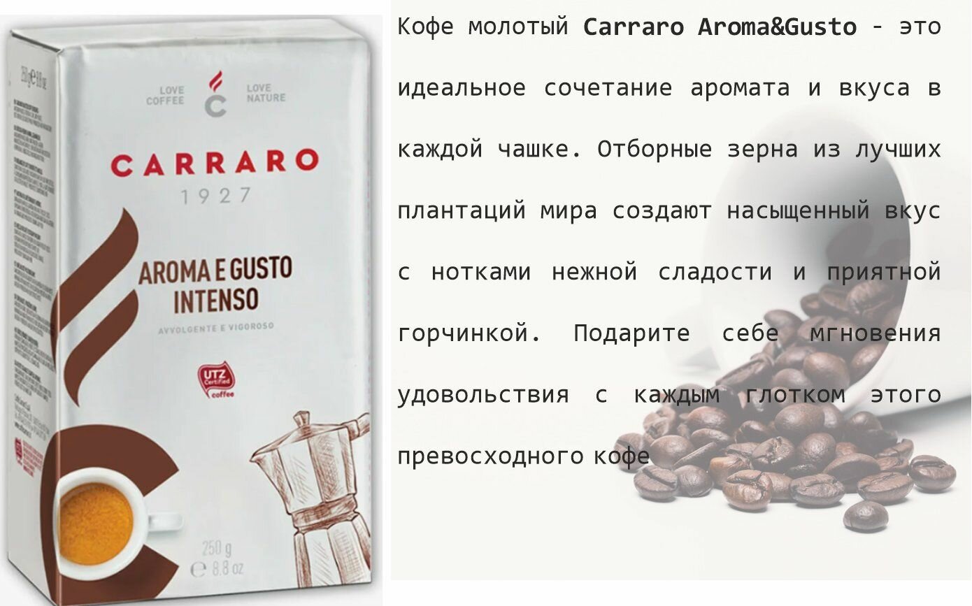 Кофе молотый Carraro Aroma e Gusto 250 гр интересное: