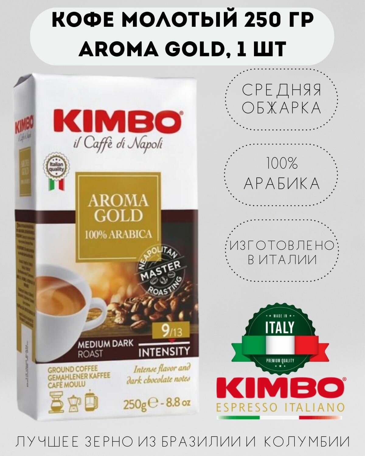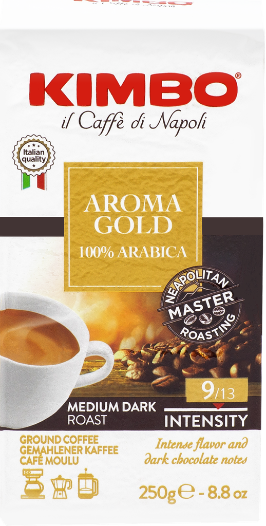 Кофе молотый KIMBO AROMA GOLD 100% ARABICA MEDIUM DARK ROAST (Кимбо Арома Голд 100% Арабика), 250 гр.