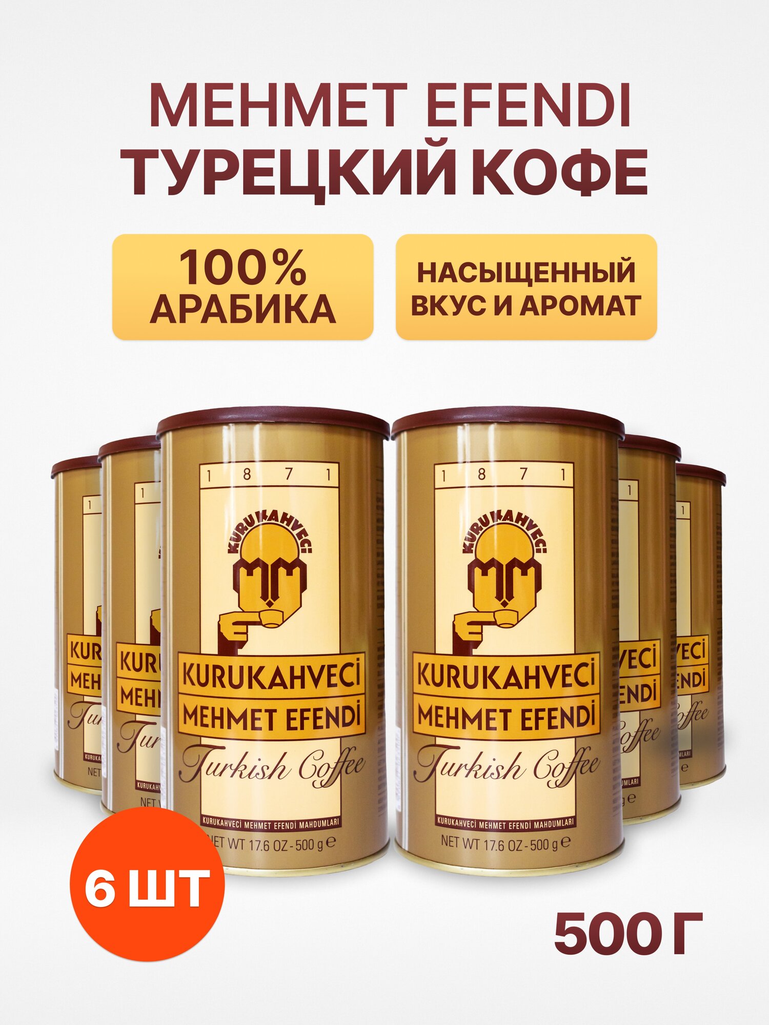 Турецкий кофе Kurukahveci Mehmet Efendi молотый, набор 6 банок по 500 гр.
