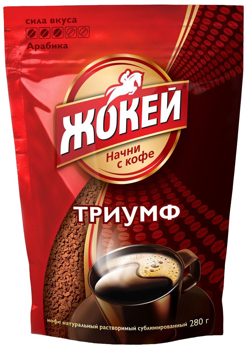 Жокей Триумф Кофе растворимый сублимированный арабика в мягкой упаковке 280 г