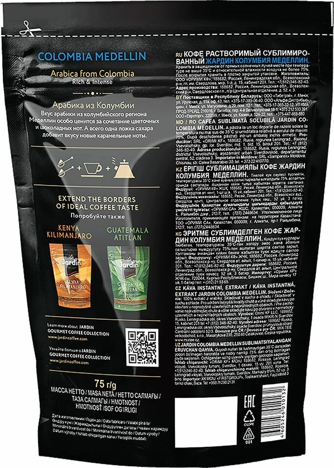 Кофе растворимый Jardin Colombia Medellin, пакет, 12 уп. по 75 г