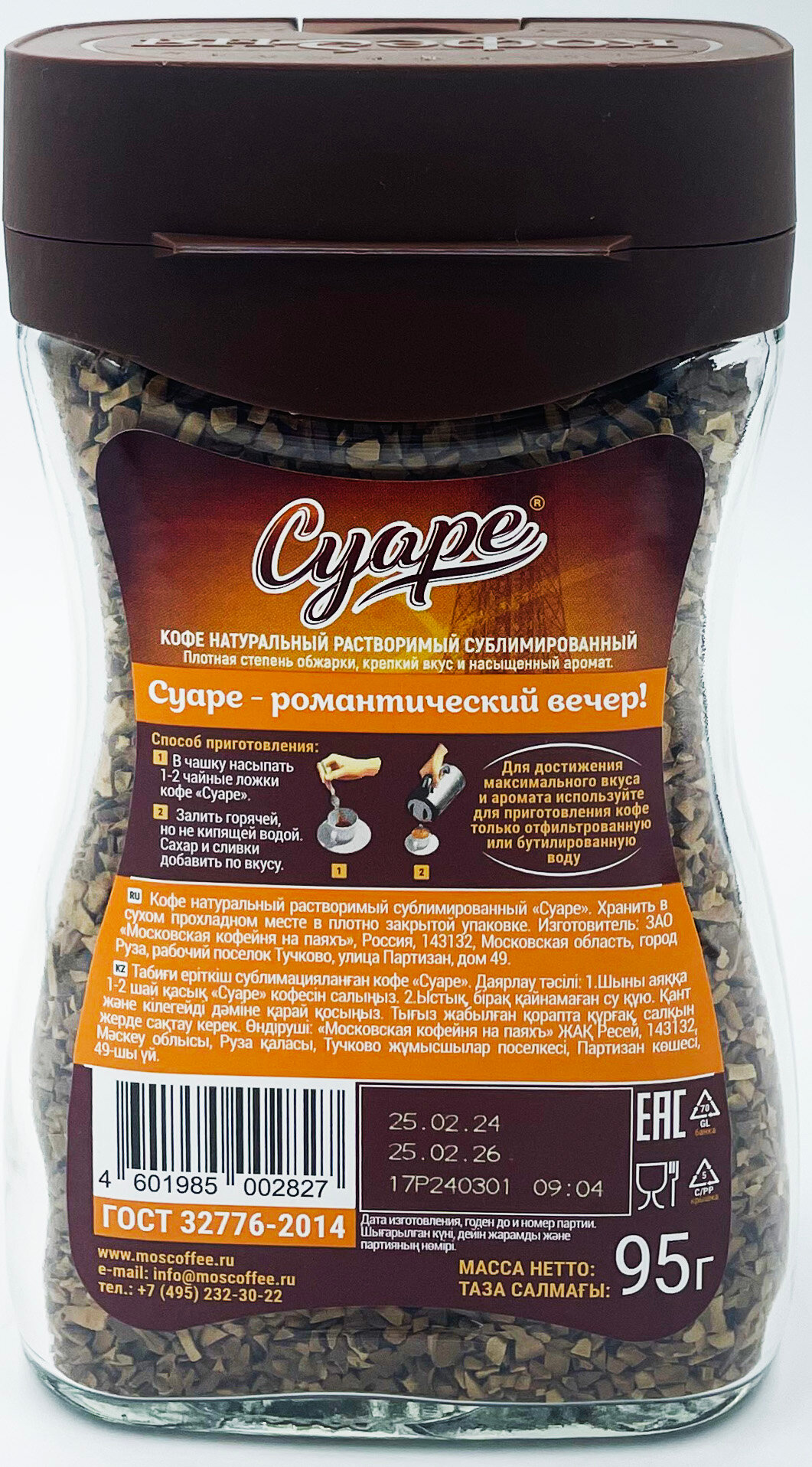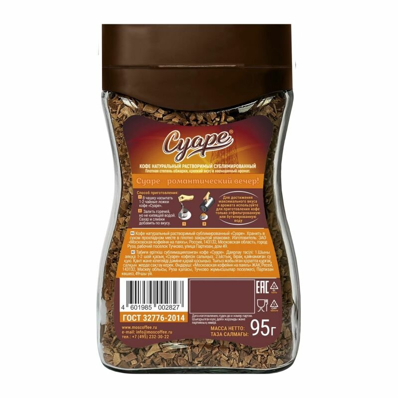 Кофе растворимый сублимированный суаре, в банке 95