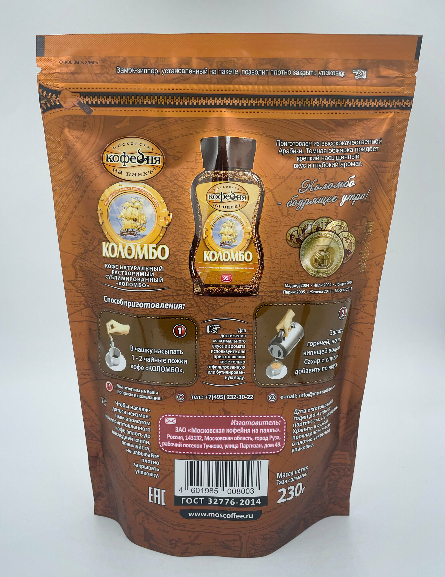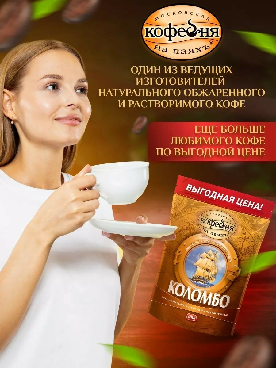 Kофе рaстворимый Московская кофейня на паяхъ Коломбо, 100% натуральный, сублимированный, 230 г