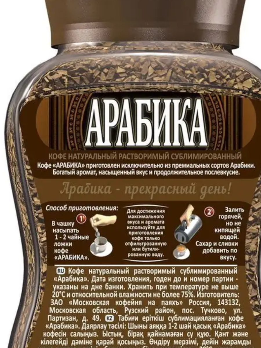 Кофе растворимый московская кофейня на паяхъ "Арабика" 95 г, стеклянная банка, сублимированный